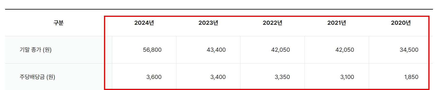 또한, 분기배당도 시행 중으로, 2024년부터 3월·6월·9월에 각 600원씩 균등 분기배당을 실시하며 배당의 예측 가능성을 높이고 있습니다.