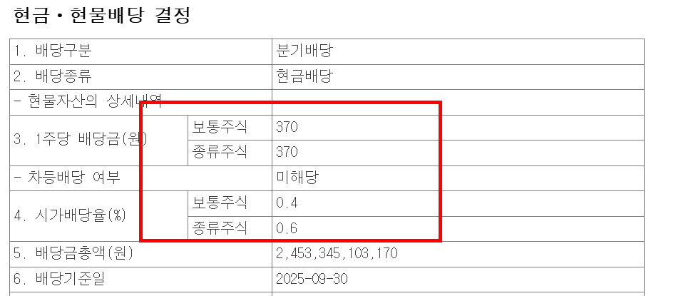 배당수익률: 보통주 0.4%, 우선주 0.6%