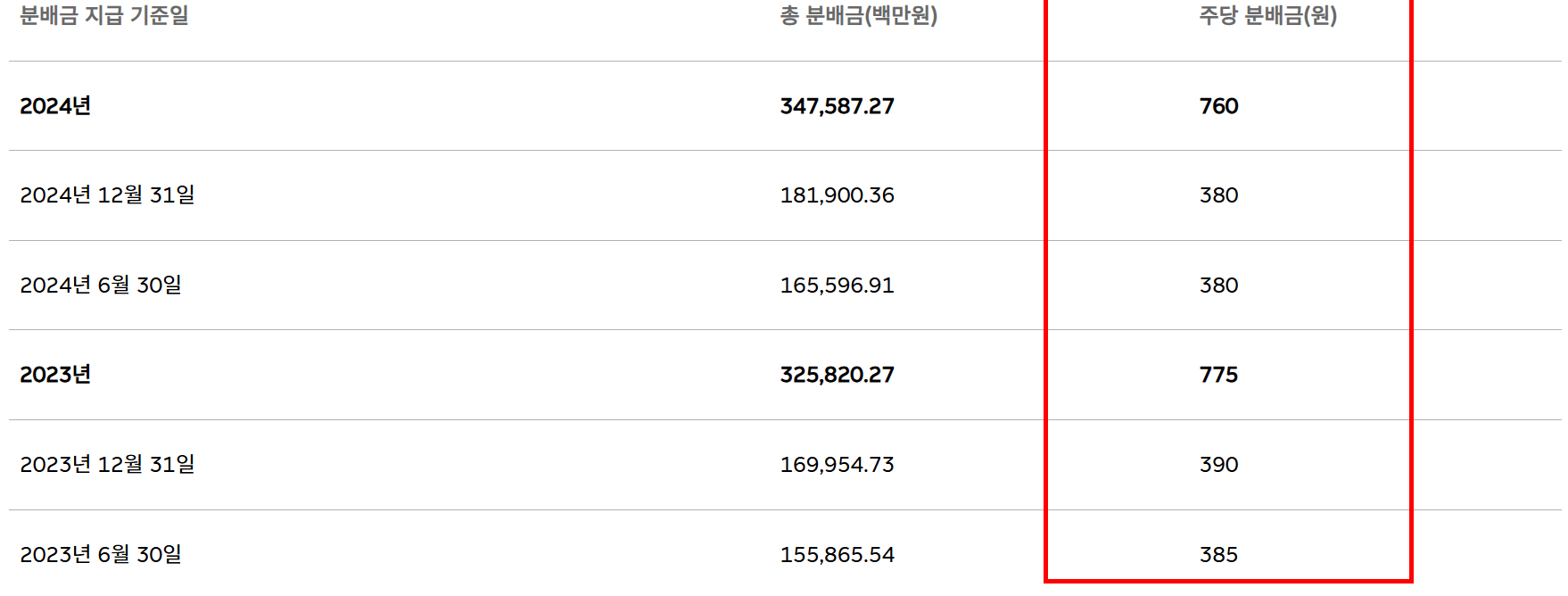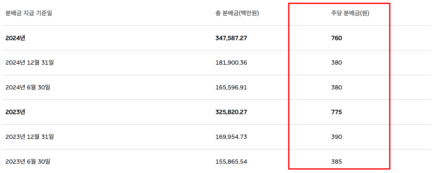 연 2회 정기 배당, 2025년 상반기 배당금 주당 380원 지급