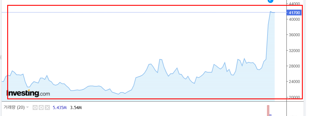 주가가 52주 최고가를 경신하면서 검색량과 관심도 역시 급격히 늘어난 상황입니다.