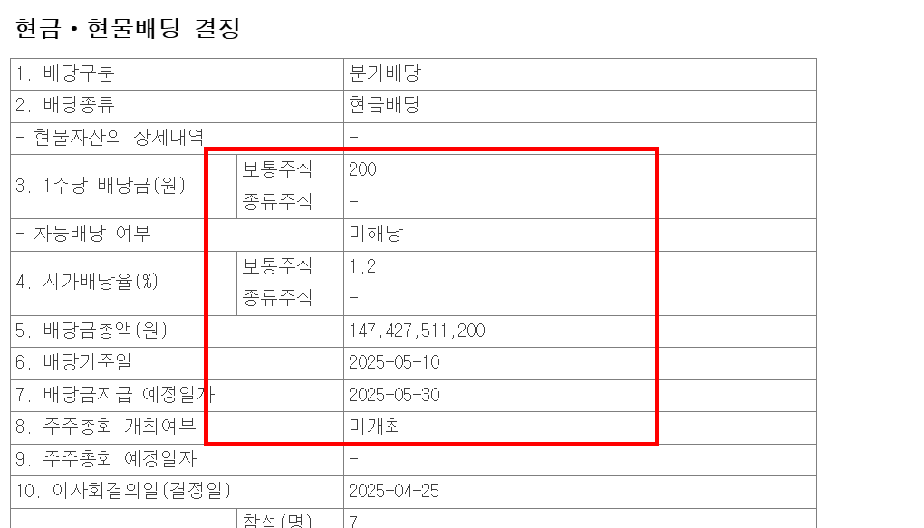 2025년 분기별 배당 일정